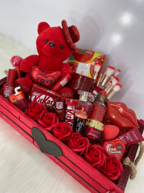 لوازم ارایشی و بهداشتی که در داخل پک هستند عبارتند از:ست براش ۱۰تیکه_لاک قرمز_رژ لب جامد قرمز_رژلب مایع قرمز_بالم لب آب نباتی-بادی اسپلش شاین دار-تینت لب کوکاکولا-پرایمر بورجیوس-کرم دور چشم _ماسک لیفت جنسینگ - ماسک ورقه ای-پدتخم مرغی-رژلب ساندیسی- ماسک لب